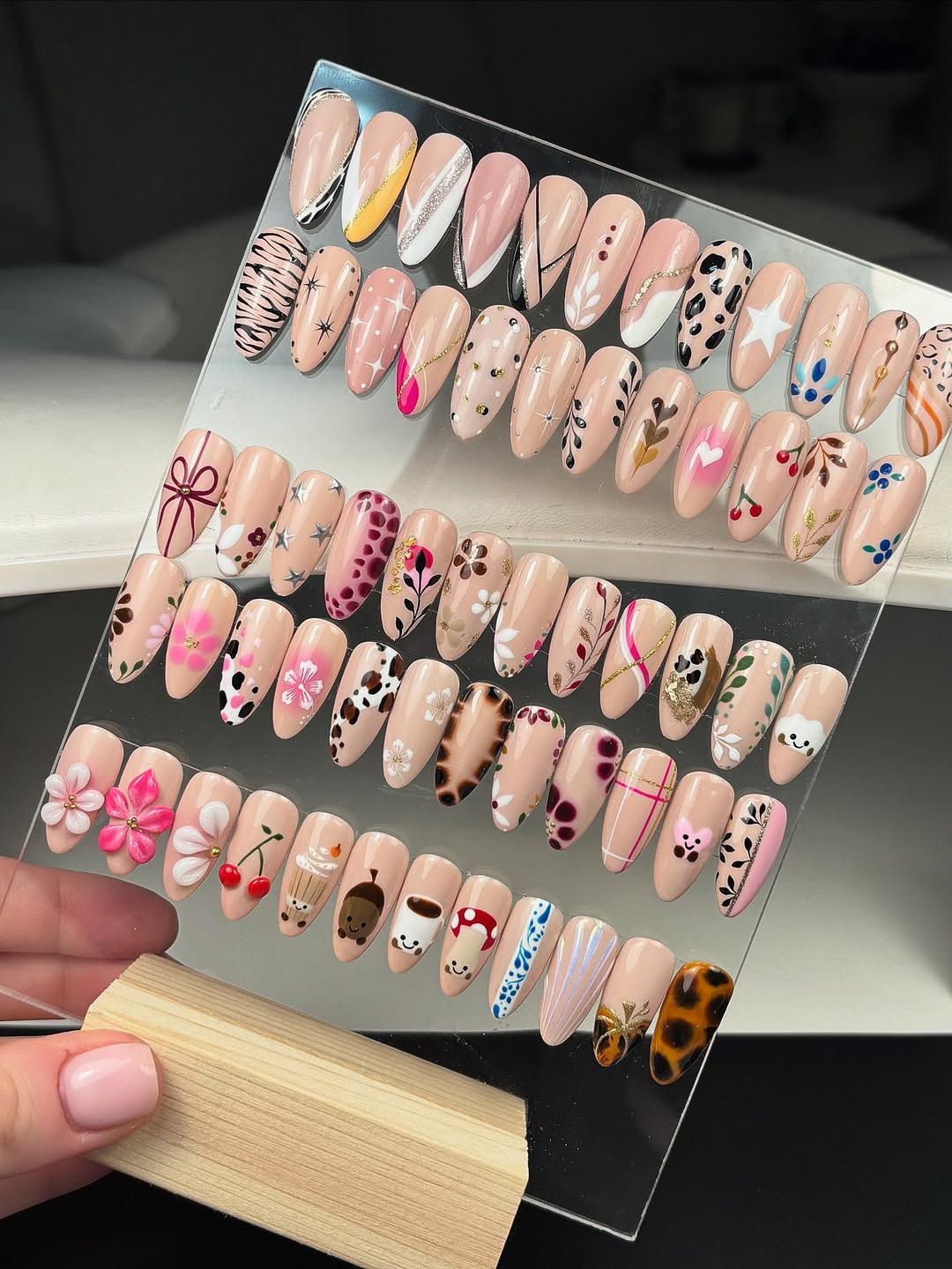 - 3D and Embellished Art: Rhinestones, charms, or layered 3D elements – $120–$180+